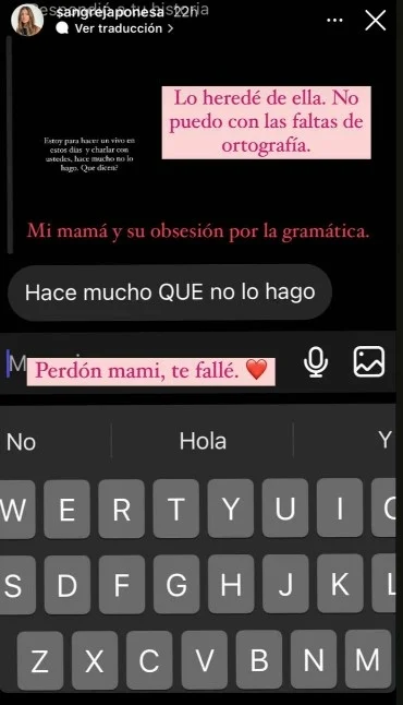 "Mi mamá y su obsesión por la gramática. Lo heredé de ella, no puedo con las faltas de ortografía. Perdón mami, te fallé", escribió la actriz.