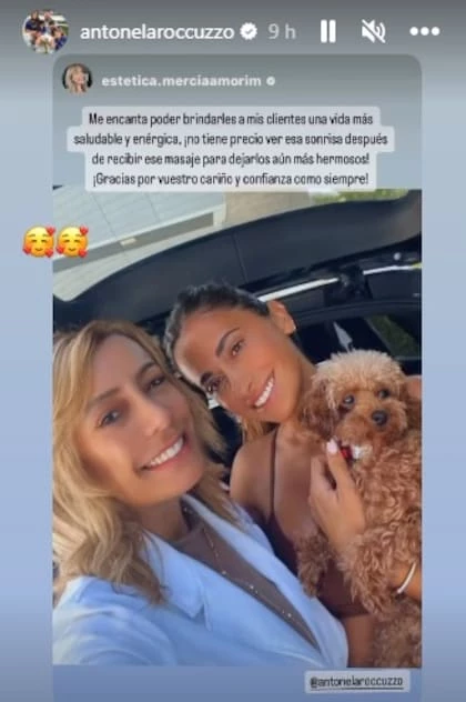 La mujer junto a Antonela escribió: “Me encanta poder brindarles a mis clientes una vida más saludable y enérgica. ¡No tiene precio esa sonrisa después de recibir ese masaje para dejarlos aún más hermosos! Gracias por vuestro cariño y confianza como siempre”.