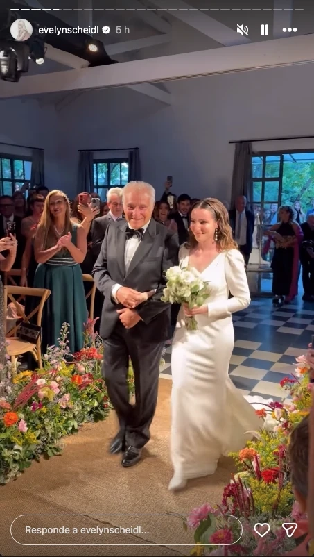 Uno de los instantes más conmovedores fue el ingreso de la novia al altar del brazo de su padre, Alberto Hazán. La escena, cargada de simbolismo, emocionó a todos los presentes y marcó el tono de una ceremonia donde las lágrimas y las sonrisas se mezclaron constantemente.
