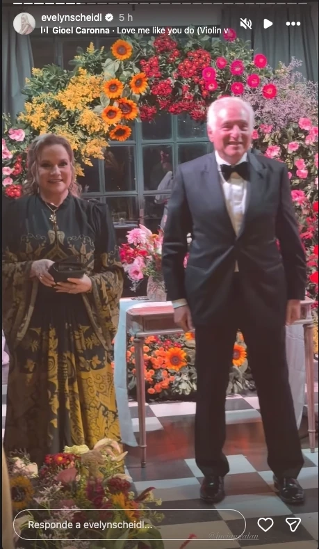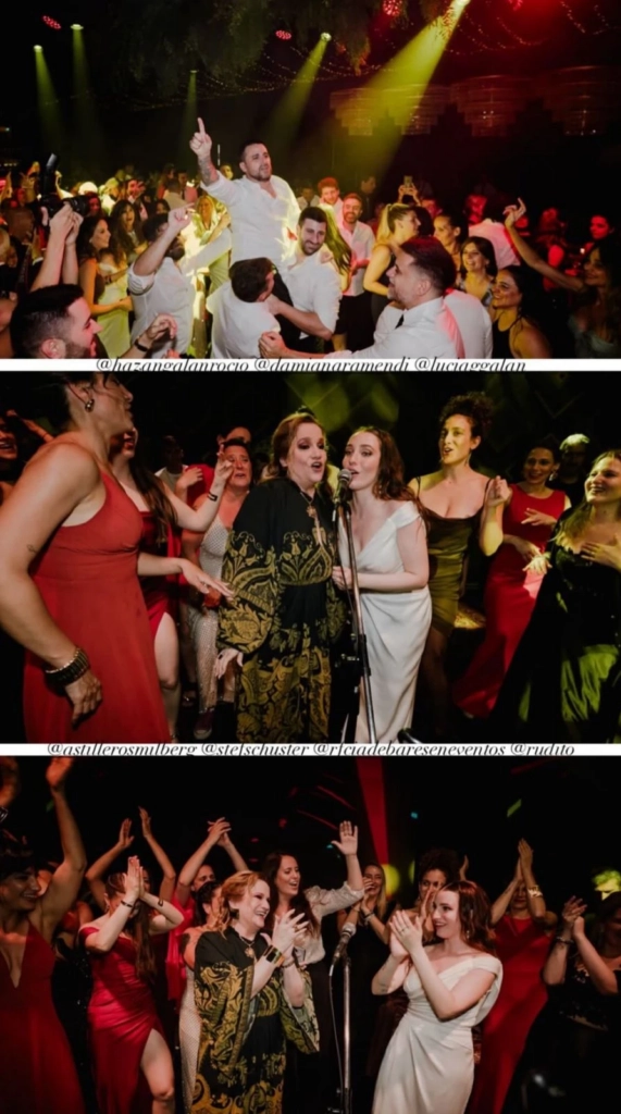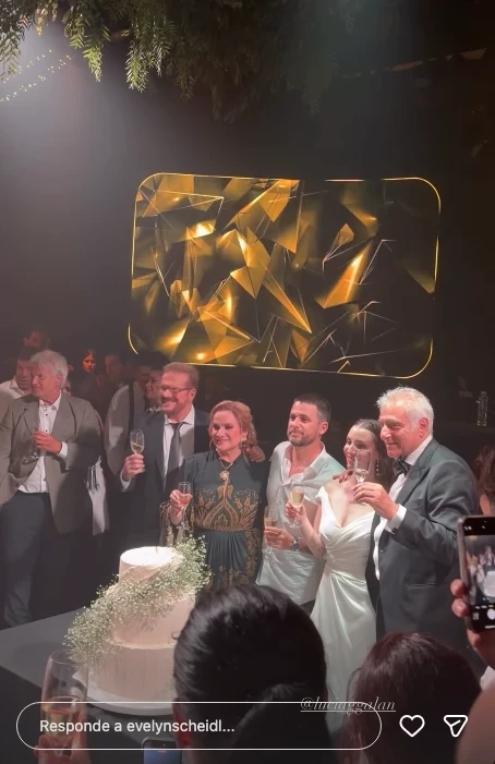 Con un elegante vestido negro de mangas largas y detalles en tonos verdes, acompañó de cerca a su hija en cada momento clave. La fiesta tuvo todos los condimentos de un casamiento soñado. No faltaron el clásico vals de los novios, el corte de torta y los brindis familiares.
