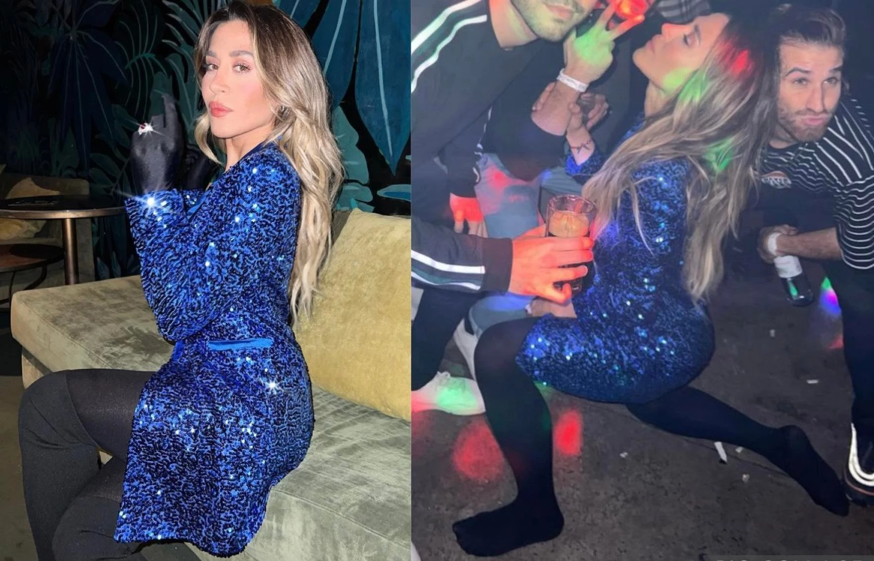 Jimena lució en su cumpleaños un saco en paliet azul, guantes largos negros y botas bucaneras, pero terminó descalza, en remera y sin nada bajo.