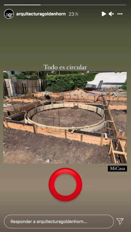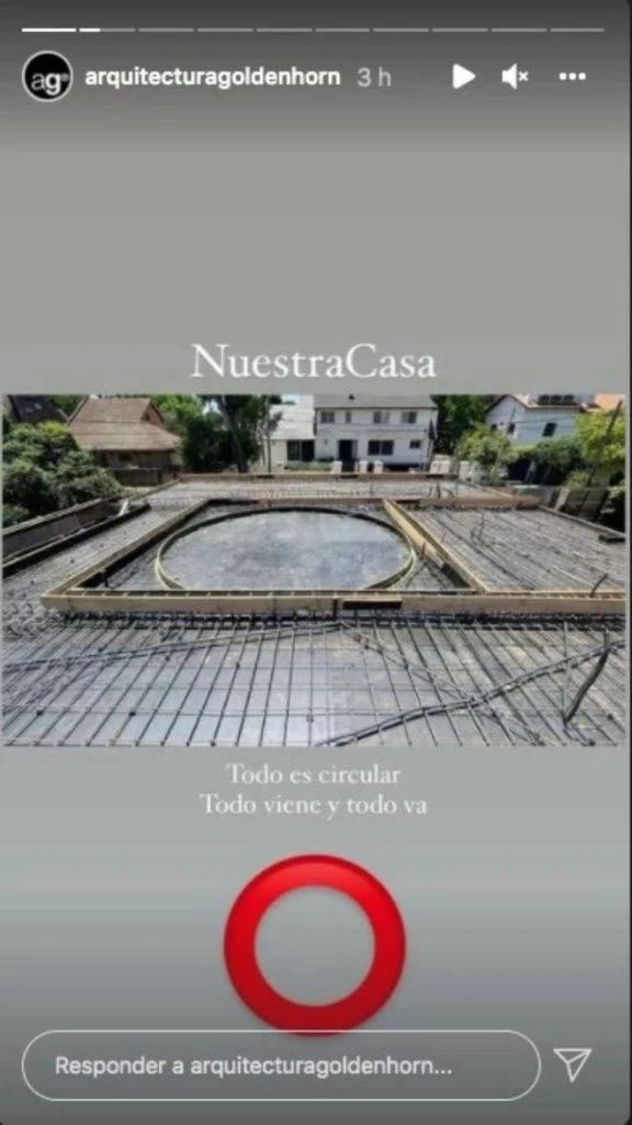 El hogar se caracterizará por un concepto muy moderno de un formato en círculo. De hecho, en las stories, Goldenhorn escribió: “Nuestra casa. Todo es circular. Todo viene y todo va”.