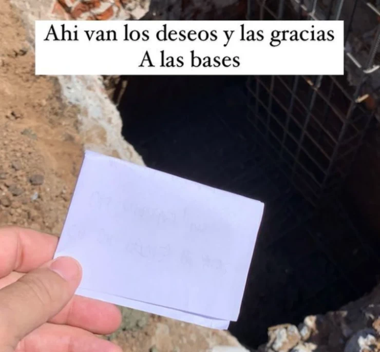 Goldenhorn posteó una foto en la que se ve su mano, una papel en blanco y una fosa muy profunda. A lo que le agregó una insólita descripción: "Ahí van los deseos y las gracias a las bases". ¿Qué habrá escrito en esa hoja?