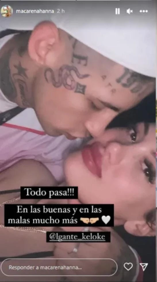 En las instantáneas de 24 horas también subió selfie con el cantante de cumbia 420 en la que le mandaba palabras de aliento "Todo pasa!. En las buenas y en las malas mucho más". Ambas historias fueron después fueron borradas. Sin embargo el apoyo a su novio sigue porque su última publicación en la que se los ve junto a unos amigos dice "No bajes los brazos Rey!!! Libertad para Elián".