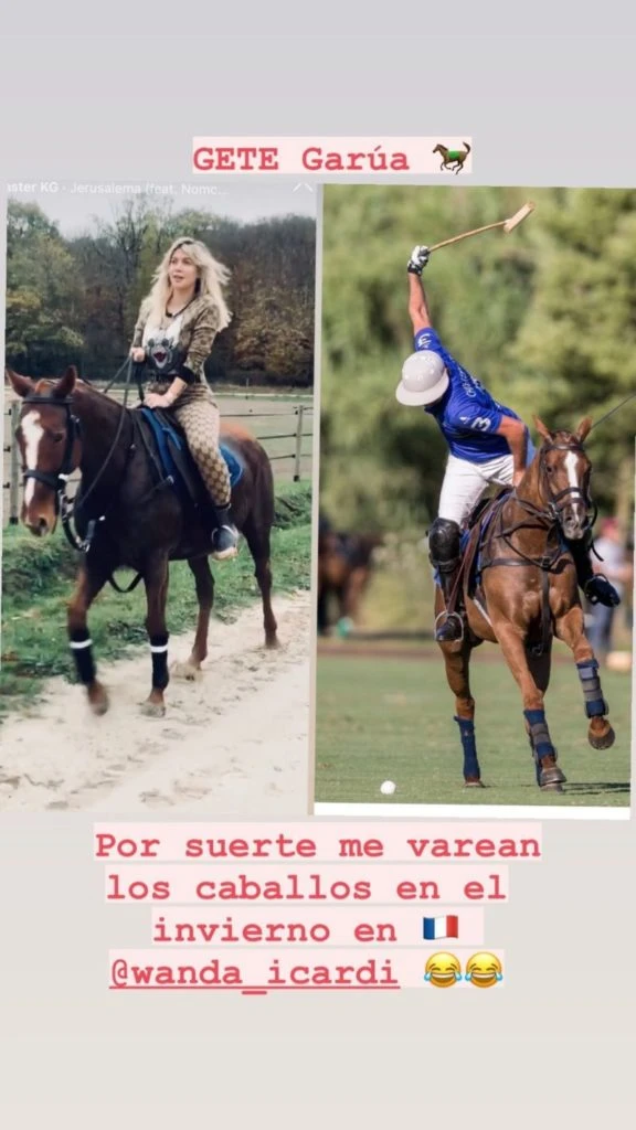 Hace poco tiempo Wanda ha mostrado una nueva faceta en sus redes y es el amor por los caballos. A su nueva afición a los equinos habría que sumarle los excéntricos looks para montarlos. Una semana atrás la empresaria se mostró rodeada de caballos usando zapatillas Air Jordan 1 OG Dior, una edición limitada diseñada por Dior y Air Jordan que cuesta nada más ni nada menos que dos millones de pesos. Su última visita a las caballerizas la hizo con un mono Gucci ¡de 2800 dólares!