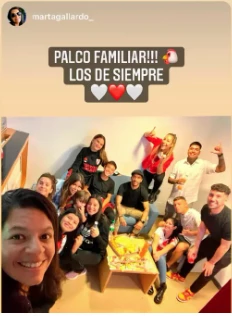 No obstante, la hermana de Marcelo, Marta Gallardo, también se sumergió de lleno en la polémica y lanzó un mensaje filoso, ya que subió a su perfil una instantánea de toda la familia en un palco de la cancha y escribió: “Palco familiar!!! Los de siempre”.