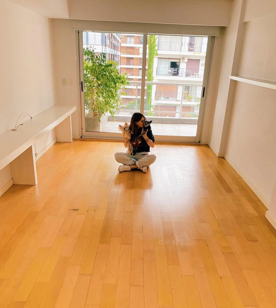 “Chau depto 604. ¡Te despido con mucho amor! Fue un lugar donde viví una hermosa etapa de mi vida. Lista para lo nuevo” escribió la empresaria junto a imagen de ella acompañada de sus mascotas en el living ya vacío.