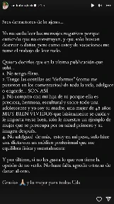 “Señores detractores de lo ajeno... yo no suelo leer los mensajes negativos porque entiendo que no construyen y que solo buscan destruir o dañar. Pero como estoy de vacaciones me tomé el trabajo de leer todo. Quiero decirles que en las últimas fotos que subí: no tengo filtro”, comenzó.