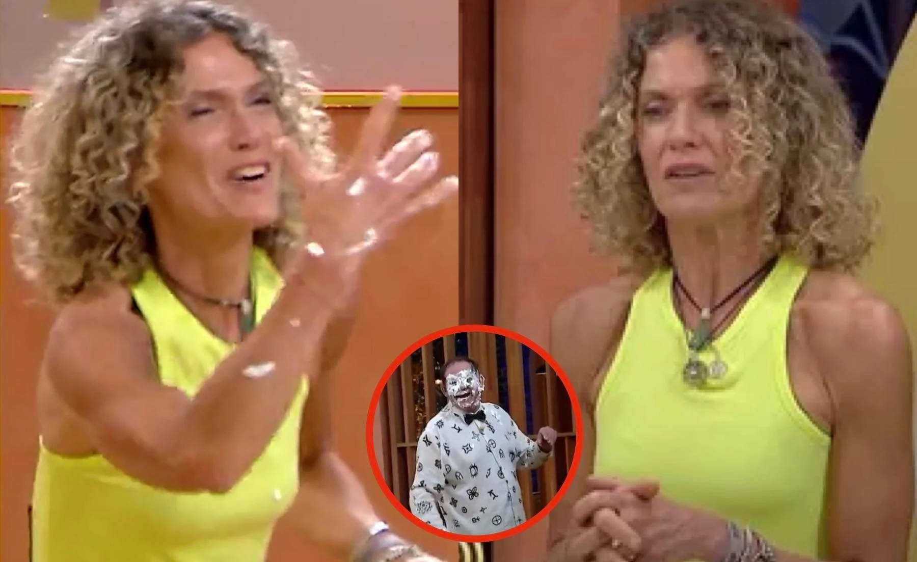 Y fue en ese momento que Maru, encargada de explicarles a los competidores lo que tenían que hacer, no lo dudo y tentada por la situación tomó la torta que estaba de muestra y se la arrojó a la cara a Lainé, su compañero de jurado, dejando a todos sin palabras y sorprendidos.