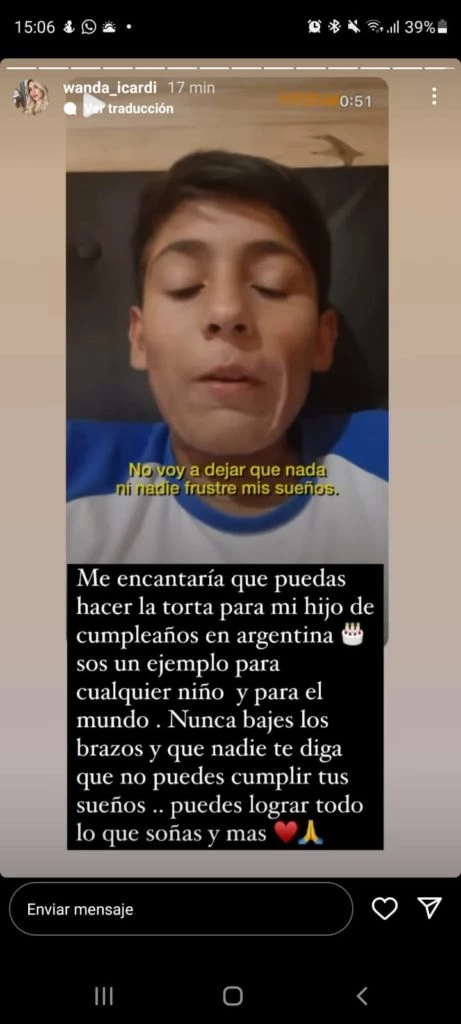 En medio del escándalo por las burlas a Joaquín Nahuel, el niño de 10 años que sueña con ser pastelero, cientos de famosos usaron sus redes sociales para defenderlo y Wanda Nara fue uno de ellos.