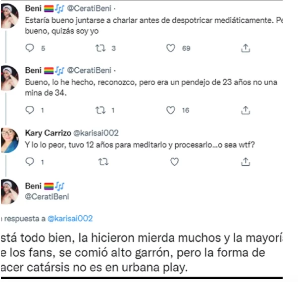 Con una postura muy definida, Benito redobló su pensamiento de la modelo, aunque reconoció que atravesó un trance injusto, y consideró: “Tuvo 12 años para meditarlo y procesarlo. Está todo bien, la hicieron mierda muchos y la mayoría de los fans, se comió alto garrón, pero la forma de hacer catarsis no es en Urbana Play”.