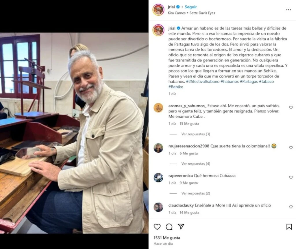 En cuanto al ataque a Jorge, todo comenzó cuando escribió en su Instagram: "Armar un habano es de las tareas más bellas y difíciles de este mundo. Pero si a eso le sumas la impericia de un novato puede ser divertido o bochornoso. Por suerte la visita a la fábrica de Partagas tuvo algo de los dos".