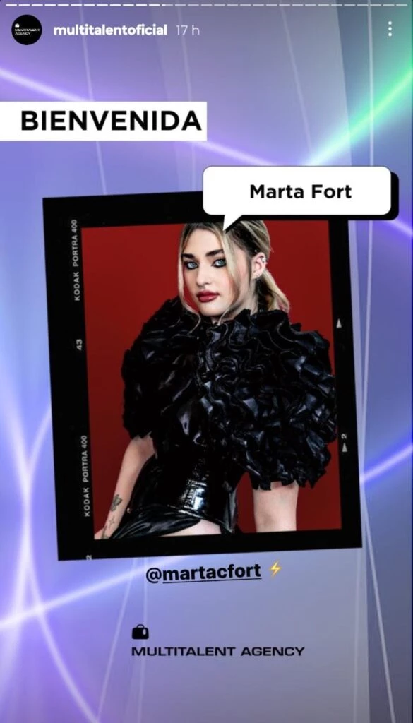 Willy García Navarro, su director subió una foto junto a Marta en la que puso: Bienvenida!! @martafort lo mejor para vos!!. Mientras tanto, la nueva modelo se encargó de compartirla y agregó: oficialmente ya soy parte de @multitalent junto a emojis de corazón y sonrisas.