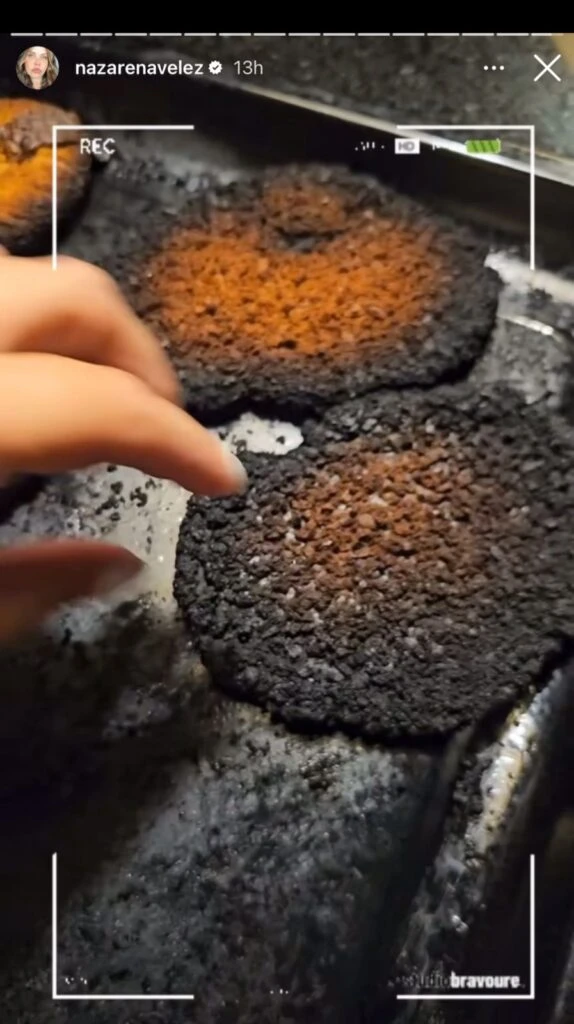 Es que, inquieta, activa y siempre laburadora, Naza aprovechó ese tiempo libre fuera del teatro para cumplir con acuerdos comerciales con algunas marcas para las cuales genera contenido en redes sociales y mientras grababa un video se acordó que había dejado comida en el horno.