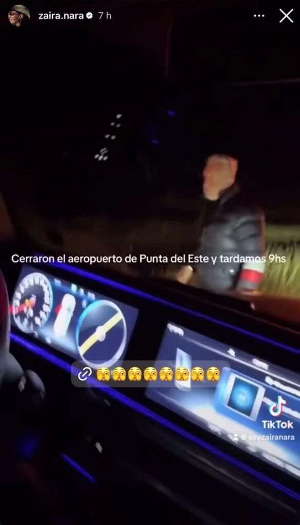 Tal como la modelo como la empresaria mediática fueron mostrando a través de sus redes sociales cómo en medio de la noche se encuentran atascados por el tránsito y el vehículo en el que iban no podía avanzar. Si bien no se llegaba a ver que sucedía adelante otra cosa preocupó a la menor de las Nara.