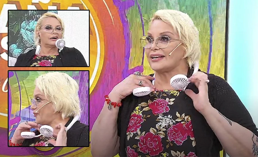 "Lo que tengo es un ventilador, con este calor algo me tengo que poner porque el clima es insoportable. Lo encontré, me gustó, lo compré y la verdad es que me sirven, son muy útiles. Mientras no me quede pegada, je je je..." bromeó Carmen, quien destacó que el producto que llevaba en el cuerpo era de origen "chino, como todo lo que viene ahora". Lo hizo poco después de coquetear en vivo con Matías Alé.