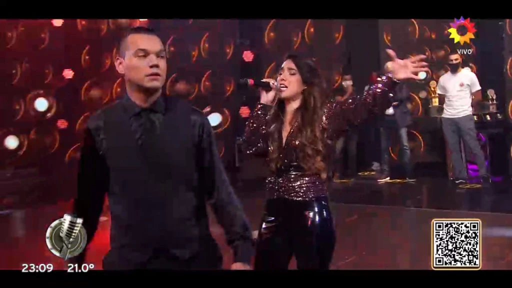 Al finalizar la presentación, sonriente, la cantante tropical hizo un pedido de disculpas y le envió un saludo al duo dueño de la canción: “Les mandamos un beso a los Pimpinela porque hicimos cualquier cosa”. Y sonrojado, Brian también se disculpó: “Un beso y un perdón”.
