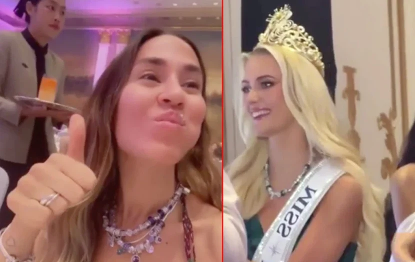 En ese raid, Jimena se encontró en un evento a una personalidad muy llamativa: la Miss Universo 20224. Se trata de una danesa, de 21 años, que ingresó al mismo recinto en el que estaba cenando. Rápida de reflejos la filmó con su celular y se mostró muy graciosa al expresar: “¡Ahí está la Miss Universo! Miren lo que es, wow”.