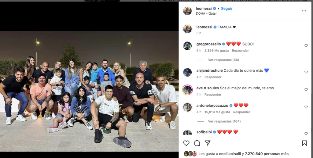 En la publicación que subió a su feed oficial se percibe a quince adultos y cinco niños, todos del clan Messi. El capitán se ubicó al lado de su esposa y su mamá Celia. Para ponerle un título, el delantero optó por una sencilla y poderosa palabra: “Familia”.
