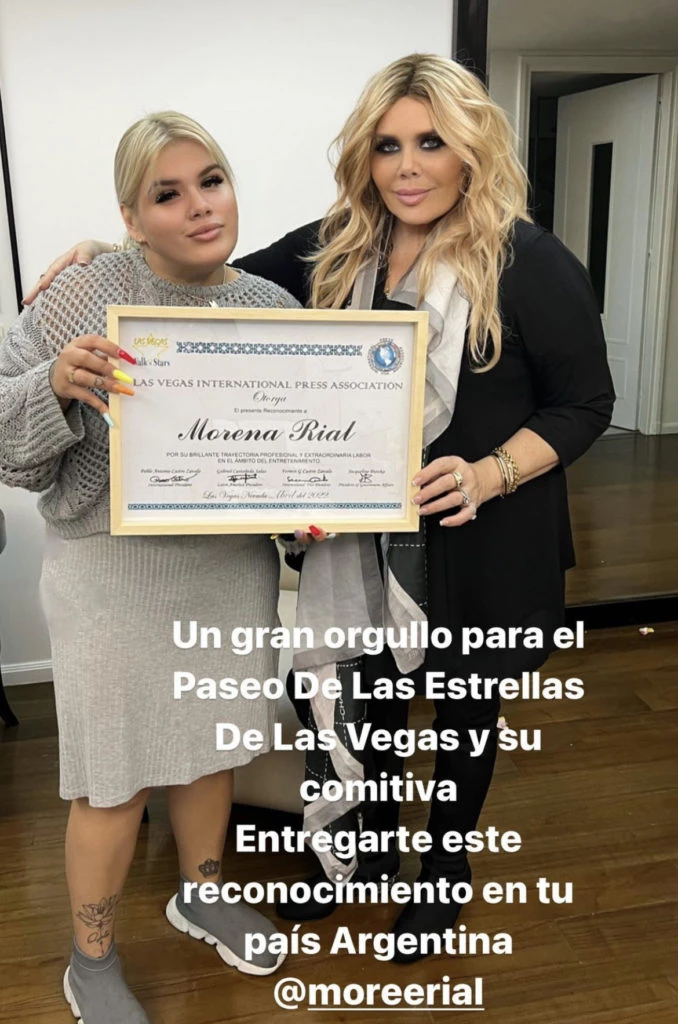 Fue Jacqueline Patoka quien compartió una foto junto a quien es como su hija y escribió: "Un gran orgullo para el paseo de las estrellas de Las Vegas y comitiva entregarte este reconocimiento en tu país, Argentina". Y una fantástica postal de ambas.