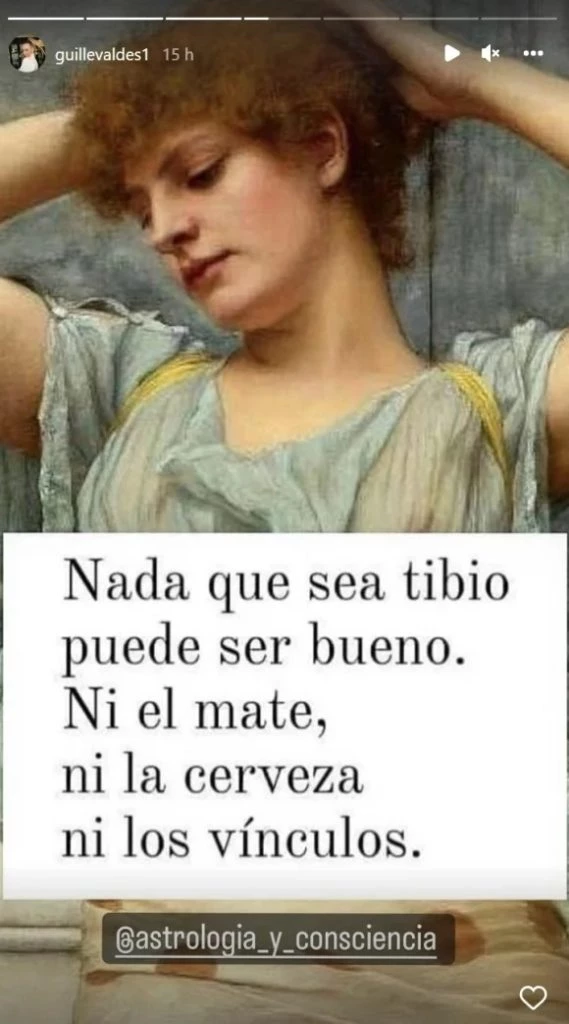 Y es que, mediane su cuenta de Instagram, la ex jurado de Showmatch: La Academia compartió una imagen con un polémico mensaje que parece ser para Marcelo Tinelli: "Nada que sea tibio puede ser bueno. Ni el mate, ni la cerveza, ni los vínculos".