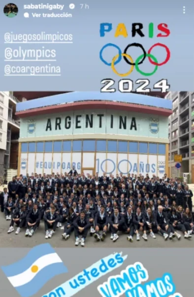 Las publicaciones que hizo en sus historias de Instagram tienen que ver con el inicio de los Juegos Olímpicos que se están disputando en París. En una de ellas salía toda la delegación argentina y ella puso una bandera de nuestro país con la frase "estamos con ustedes".
