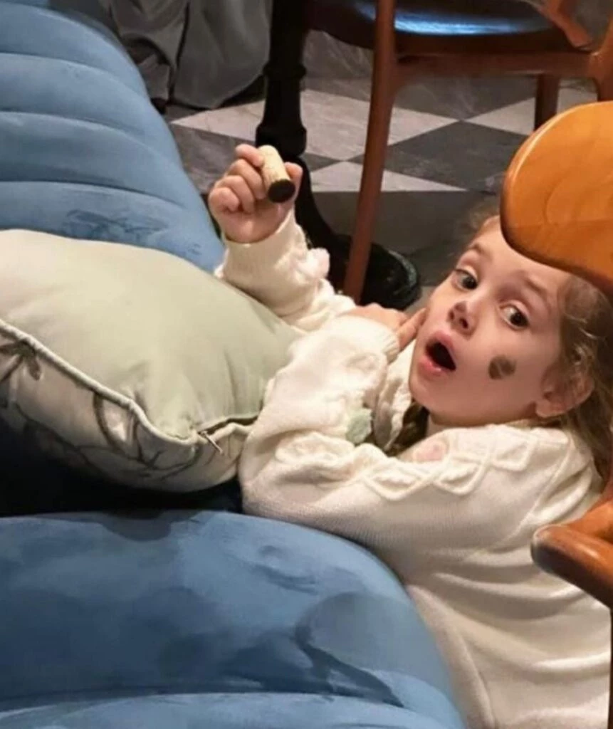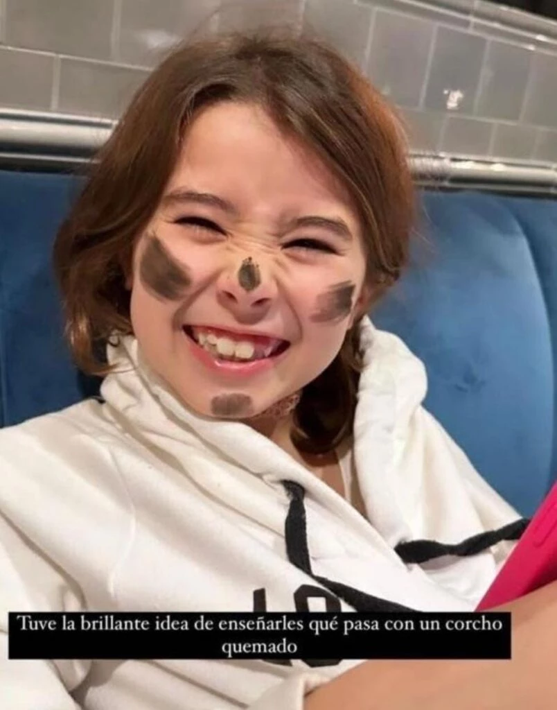 En sus historias de Instagram, la protagonista de Objetos subió como cada uno de sus hijos se hizo un diseño, con una frase acompañada en la foto de Rufina, su hija mayor: "Tuve la brillante idea de enseñarles que pasa con un corcho quemado", quien tenía distintas marquitas en nariz frente y mejillas.
