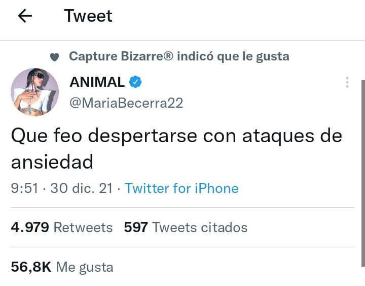 Desde la Riviera Maya, escribió sobre su salud: "Qué feo despertarse con ataques de ansiedad". La revelación de la compositora recibió más de cuatro mil retweets y cientos de comentarios.