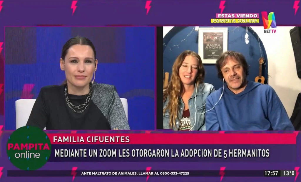 En la última emisión del programa Pampita Online su conductora, Carolina Ardohain (42), mostró su cara más sensible. Sin poder contener las lágrimas, la modelo conversó con Mariana y Matías Cifuentes, una joven pareja -conocida por el público a raíz de una publicidad de tevé- que adoptó cinco hermanitos.