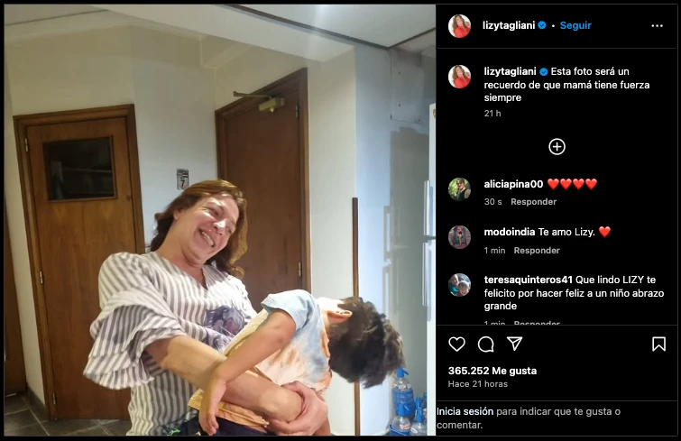 “Esta foto será un recuerdo de que mamá tiene fuerza siempre”, escribió Tagliani en una foto donde se la puede ver a la conductora sonriendo con su hijo en brazos. Rápidamente recibió diferentes mensajes de apoyo, con una lluvia de likes y algunas figuras del espectáculo saliendo también a bancarla.