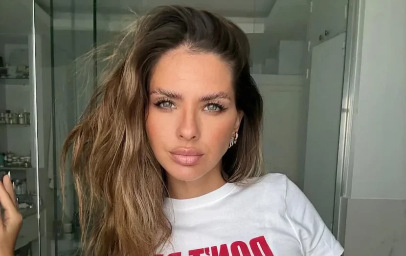 La actriz compartió una imagen en su cuenta de Instagram en la que posa con un look relajado: una remera blanca, cortita, con pancita al aire. Lo llamativo no fue su outfit, sino la frase estampada en el pecho, en letras rojas bien visibles: “DON’T BE JAELOUS” (“No seas celoso/a”).