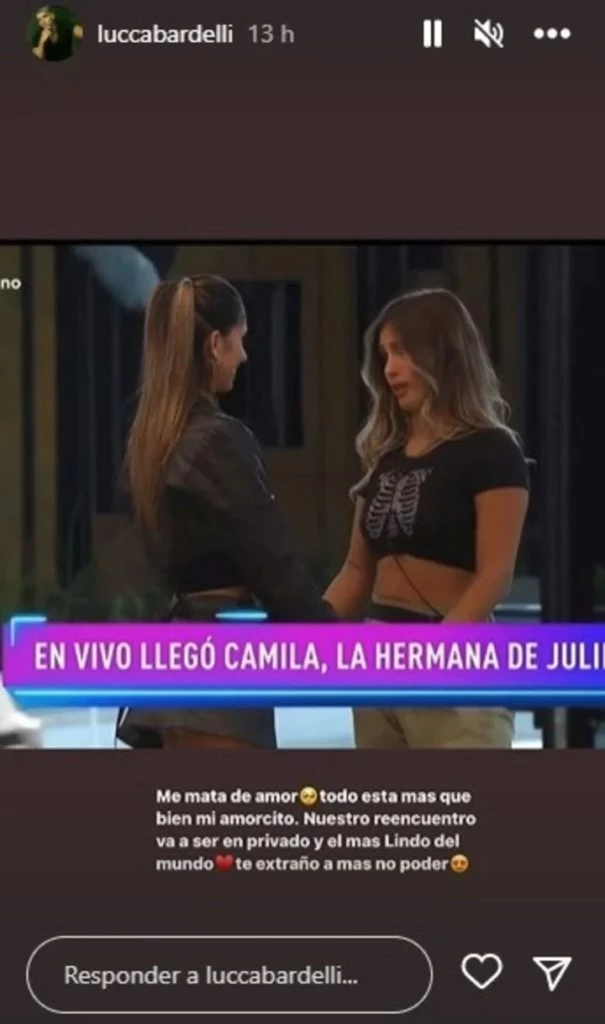 En ese momento, Lucca quiso aclarar y le dejó un mensaje a través de sus redes sociales. “Me mata de amor. Todo está más que bien mi amorcito. Nuestro reencuentro va a ser en privado y el más lindo del mundo. Te extraño a más no poder”.