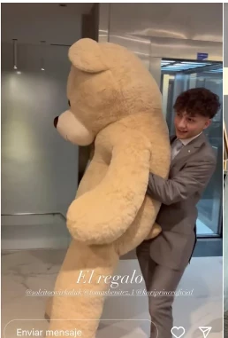 Karina estalló de emoción y expresó: “Chicos, esto es una cosa preciosa: ¡mirá la cara que tiene!”. Lo cierto es que ese peluche posee un costo en el mercado que ronda los 34.400 pesos. Un número considerable, pero que no se erigió en un impedimento para que Tomás agasajara a su novia en una fecha tan especial.