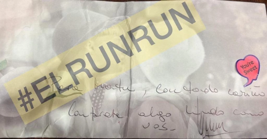 ¿Qué decía el famoso sobre? “Para Matu, con todo cariño. Comprate algo lindo como vos”, se lee al lado de una firma que sería la de Redrado y un sticker con un corazón que reza “You are sweet” (“sos dulce”).