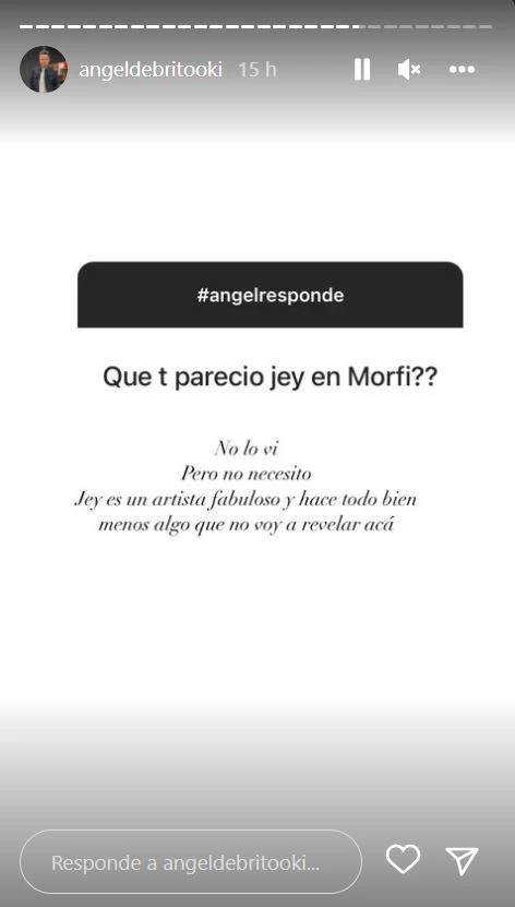 “No lo vi. Pero no necesito. Jey es un artista fabuloso y hace todo bien, menos algo que no voy a revelar por acá”, declaró De Brito, pícaro y sabiendo lo que iba a generar con esa incógnita. ¿Qué habrá querido decir sobre su colega? ¿Se animará a contarlo?