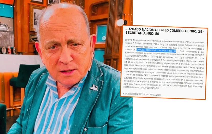 La información que se publicó el 5 de marzo en el Boletín Oficial indica que declararon la quiebra de Samuel “Chiche” Gelblung y se informó a los acreedores que “deberán presentar las peticiones de verificación ante el síndico”.