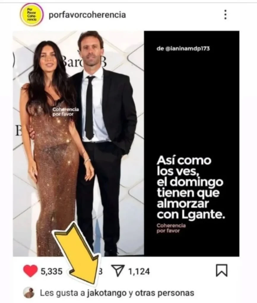 El "like" que dio Jakob fue a una publicación que mostraba a Zaira y Pieres muy elegantes, con la frase: "Así como los ves, el domingo tienen que almorzar con L-Gante". La broma apuntaba a Wanda Nara, quien recientemente confirmó su romance con el cantante de cumbia 420.