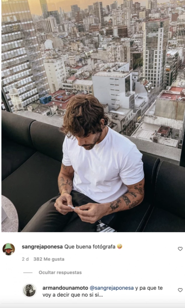 La foto retrata al ibérico en el bar que Suárez alquiló para festejar su cumpleaños y le agregó como texto: "Buenos Aires". Así llegó la intervención de la China que le comentó: "Qué buena fotógrafa...". Una clara referencia que ella capturó ese momento. Y para cerrar el diálogo, Mena afirmó: "Y para qué te voy a decir que no si sí".