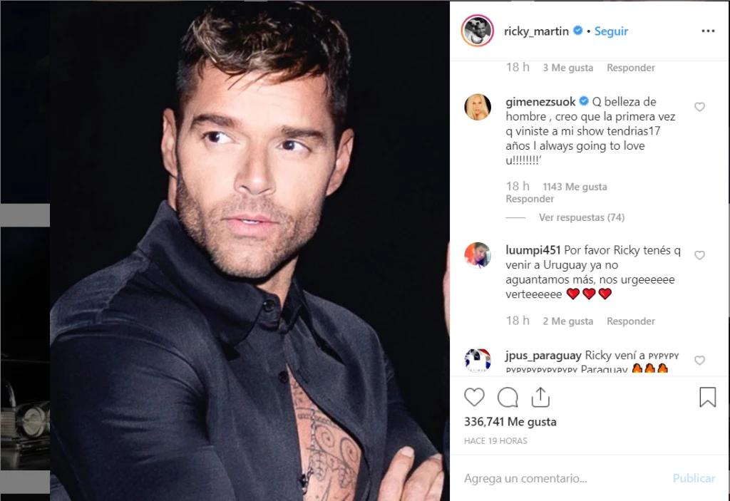 En esta oportunidad, Ricky subió a Instagram una foto que se llevó miles de "likes" y comentarios elogiando el sex appeal del artista.