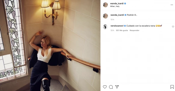 Viendo la manera en la que Wanda se deslizaba y anticipándose a que podría llegar a pisar mal el siguiente escalón, Verónica le apuntó con gracia y picardía: “Cuidado con la escalera, nena”; además, agregó diversos emojis para ponerle aún más humor a su chiste.