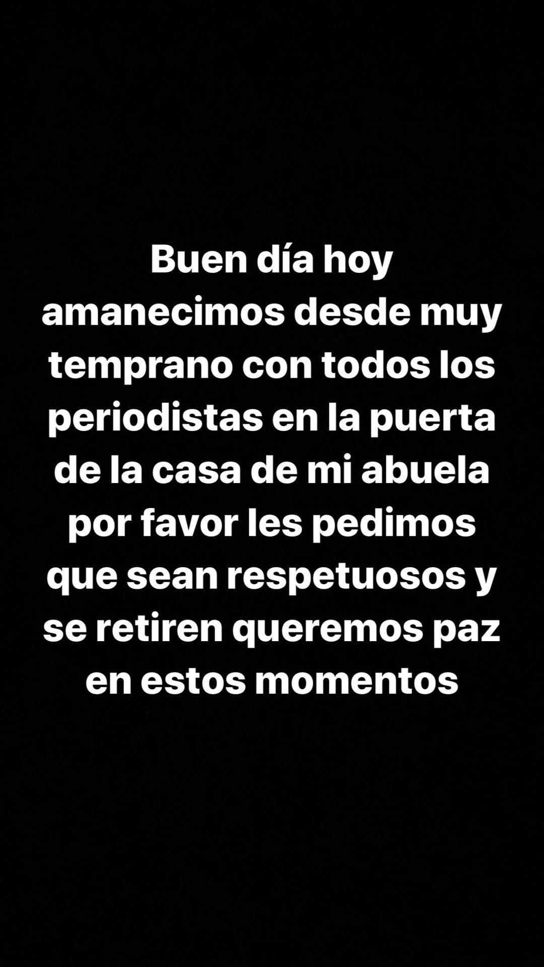 Hace instantes, Ricardo volvió a utilizar las redes, pero esta vez para pedir privacidad para el y toda su familia. "Buen día, hoy amanecimos desde muy temprano con todos los periodistas en la puerta de la casa de mi abuela. Por favor les pedimos que sean respetuosos y se retiren. Queremos paz en estos momentos", sostuvo.