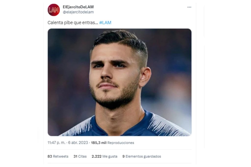 Luego de conocerse la ruptura, desde el Twitter de LAM, realizaron una publicación muy picante. En ella se puede observar la foto de Mauro Icardi y una frase contundente: "Calenta pibe que entras", decía el texto, dicha publicación se da por el affaire que pasaron el jugador y la China Suárez en París que desató el famoso "Wandagate".