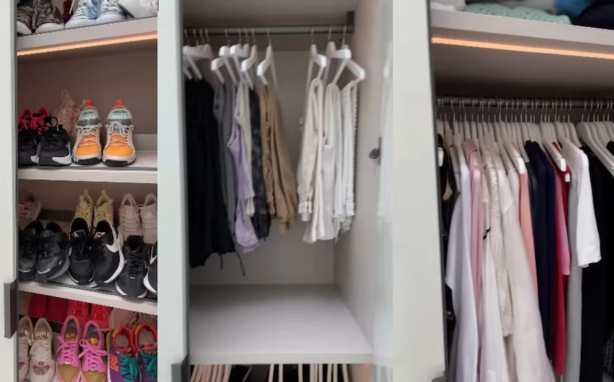 Recorriendo la casa, el cantante llegó hasta el armario e hizo público un reclamo que tiene intermante en la pareja: "Esta era mi mitad y esa es la suya. Poco a poco, mirá esto, hay zapatos en ese lado, pantalones y cosas”.