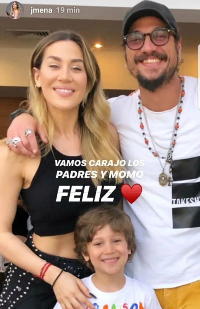 “Vamos carajo los padres y Momo feliz”, escribió Jimena en Instagram Stories junto a una foto en la que aparecen los tres abrazados y sonrientes en el acto de finalización de la sala de 5 con la emoción a flor de piel y toda la expectativa puesta en el comienzo de la escuela primaria.