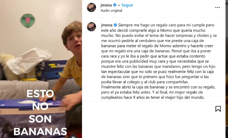 Para terminar con su posteo expresó: “Finalmente abrió la caja de bananas y se encontró con su regalo, pero él ya estaba feliz antes. Y al final, mi mejor regalo de cumpleaños hace 9 años es tener el mejor hijo del mundo”.