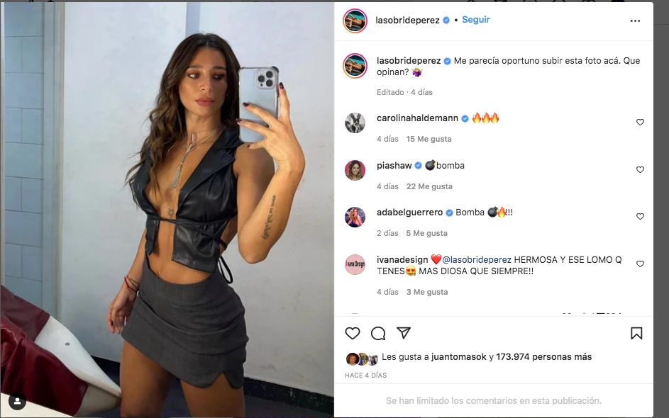 En uno de sus posteos, Sol escribió: "Me parecía oportuno subir esta foto acá. ¿Qué opinan?”. Eso abrió el debate en los comentarios, con una oleada de followers que la felicitaron por esta tonalidad y le prodigaron una tonelada de elogios.