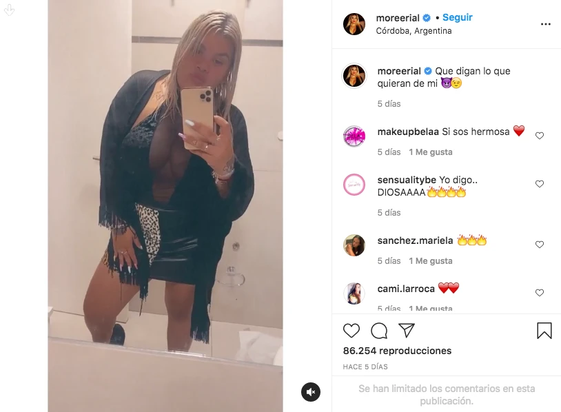 Siempre atentos a sus movimientos, los “haters” no dudaron en criticar este cambio en el vínculo de Morena y Jorge, lo que motivó una picante publicación de la joven. “Que digan lo que quieran de mí”, comentó More junto a una foto en la que se muestra sexy y atrevida.
