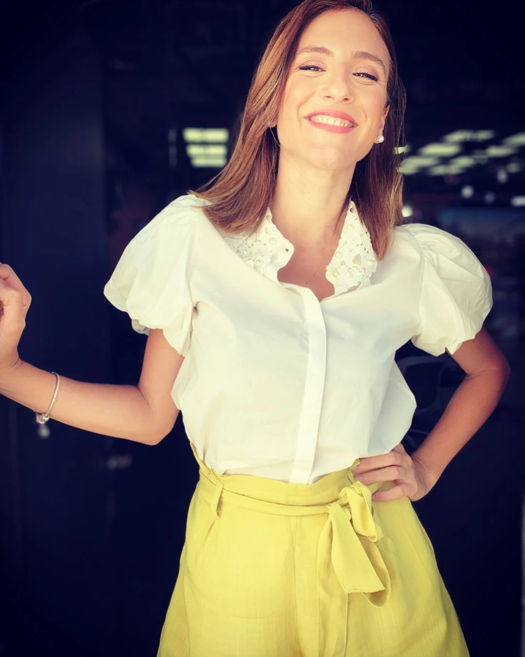 “Vamos a sambar”, invitó la periodista a los consumidores de sus cuentas, mostrando un fragmento de baile con vestido blanco -acorde al look que propone la fecha- y tacos altos.