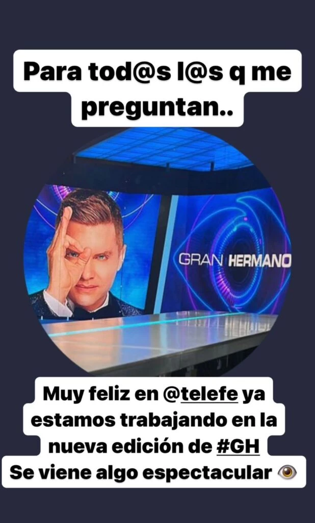 Después de los rumores, él mismo fue quien decidió aclarar el tema y lo hizo a través de una historia en sus redes sociales. "Para todos los que me preguntan… Muy feliz en Telefe, ya estamos trabajando en la nueva edición de Gran Hermano. Se viene algo espectacular".