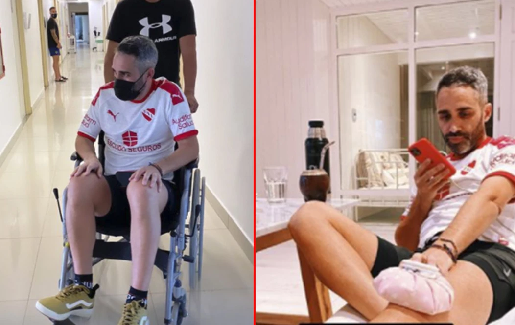 Con el humor que lo caracteriza, el Pollo se permitió tomarse con gracia este percance y mostró cómo lo llevaban en sillas de ruedas, así como su esposa Tefi Russo escribió: "Se vienen varios meses difíciles. Pobre... Él cree que después de operarse van a volver las bandejitas. Mi tierno".
